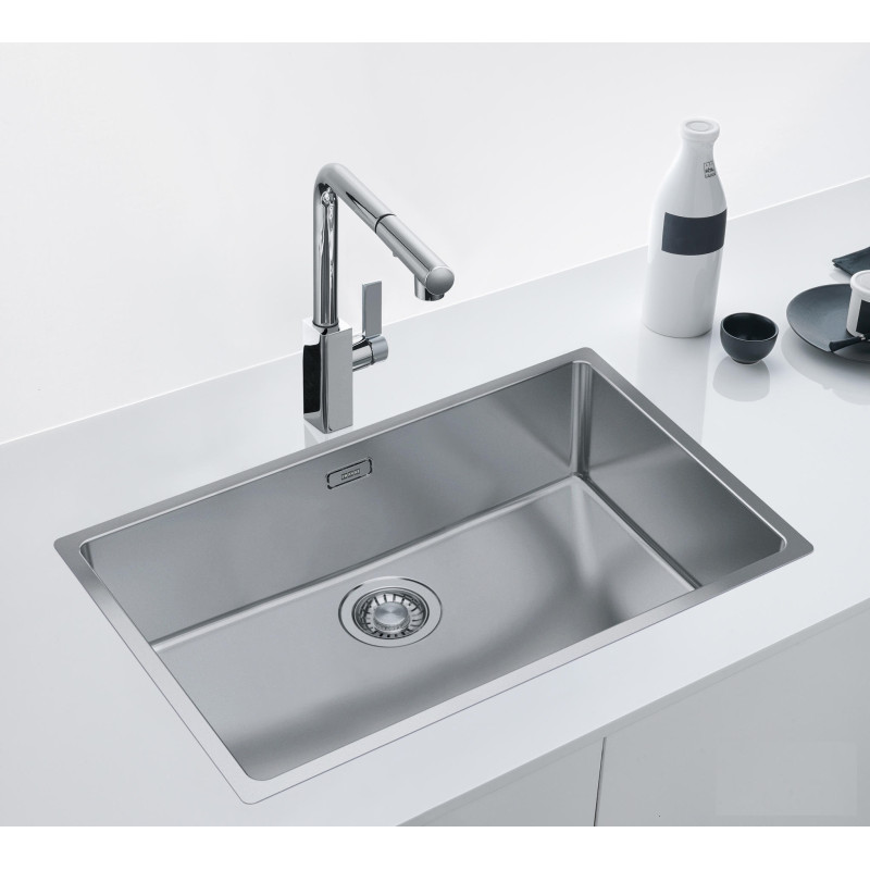 Nerūdijančio plieno plautuvė Franke Maris MRX 210-50, pusiau integruotas ventilis su valdymo mygtuku. Matmenys - 500x400x180mm. Plautuvė stačiakampio formos, modernaus dizaino, todėl tiks prie įvairaus virtuvės interjero. Plautuvė Franke Maris MRX 210-50 - puikus pasirinkimas norintiems kompaktiškos bei universalios plautuvės. Suteikiama 2 metų garantija.