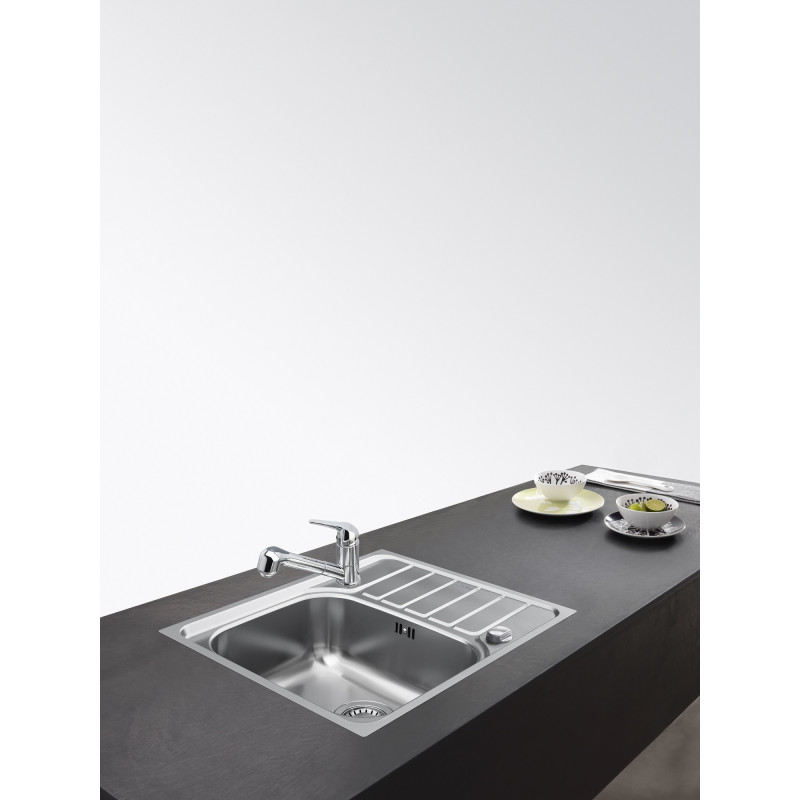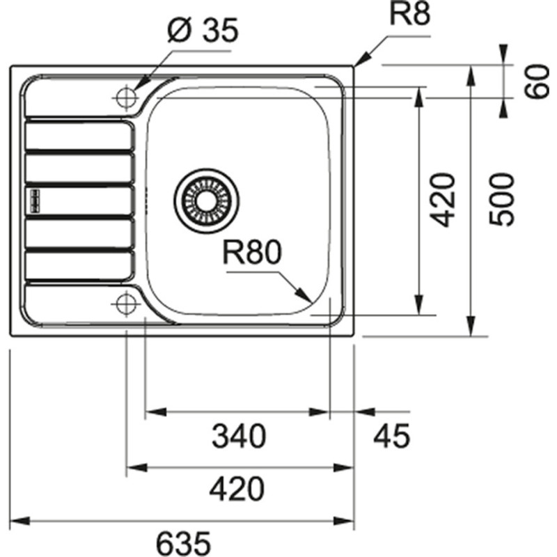 Nerūdijančio plieno plautuvė Franke Spark SKX 611-63, su ekscentriniu ventiliu. Matmenys - 340x420x160mm. Plautuvė stačiakampio formos, modernaus dizaino, todėl tiks prie įvairaus virtuvės interjero. Plautuvė Franke Spark SKX 611-63, turi platų ekscentrinį ventilį, nusausinimo plokštumą su atskiru nubėgimu, 2 skyles maišytuvui, todėl tai puikus pasirinkimas norintiems kompaktiškos bei universalios plautuvės. Suteikiama 2 metų garantija.