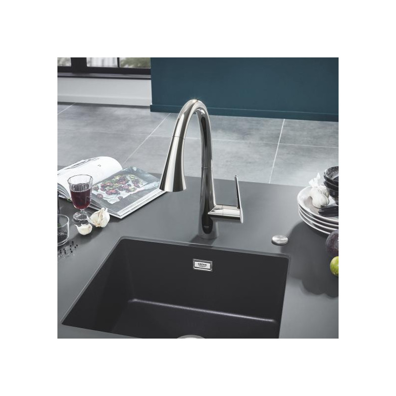 Plautuvės maišytuvas Grohe Zedra, chromo spalvos, su ištraukiama žarna, aukštas. Plautuvės maišytuvo StarLight apdaila padeda lengvai jį prižiūrėti, todėl nereikia didelių pastangų jį valant. Maišytuvo valymui naudojamas tik vanduo ir muilas, kad jo paviršius liktų nepažeistas. Maišytuvas sukasi 360° kampu, valdomas su rankenėle iš šono. Elegantiškas Grohe Zedra maišytuvo dizainas, derinasi prie įvairaus virtuvės interjero, todėl tai puikus pasirinkimas, norintiems išskirtinio plautuvės maišytuvo. Maišytuvas su ištraukiama žarna su magnetiniu galvutės pajungimu, todėl galvutė lengvai nuimama ir sklandžiai jungiama dedant ją atgal į pradinę padėtį. Galimybė rinktis iš 3 tipų vandens srauto. Vandens pajungimas - G 3/8". Maišytuve naudojama keraminė kasetė užtikrina sklandų ir ilgaamžį maišytuvo veikimą. Suteikiama 5 metų garantija.