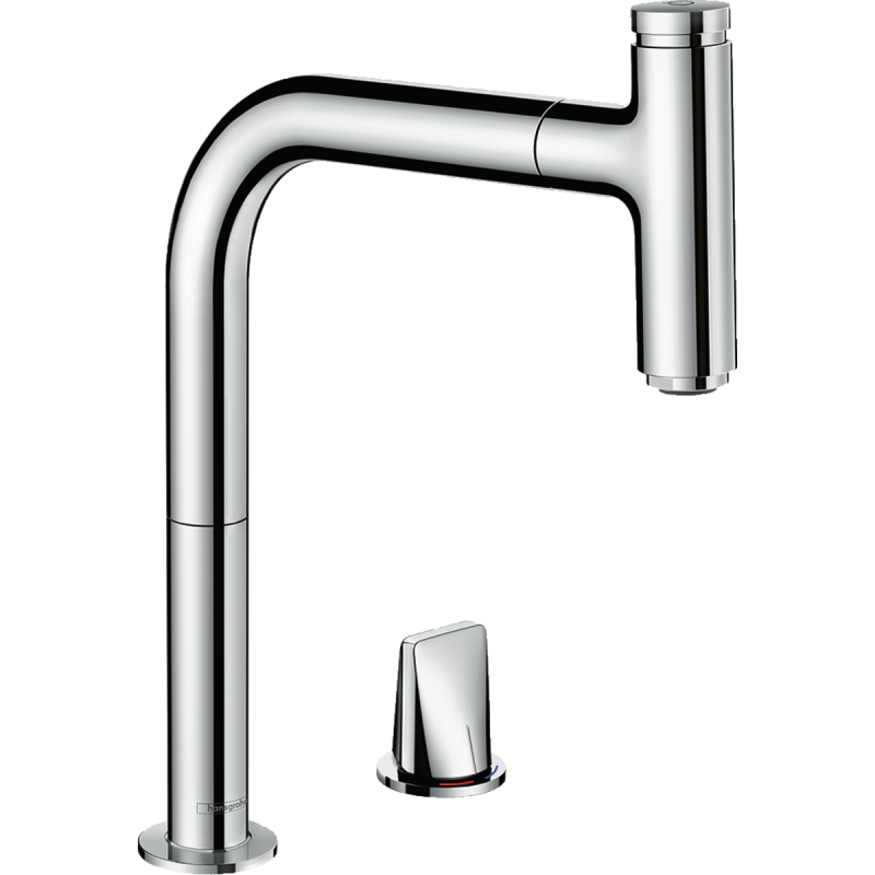Plautuvės maišytuvas Hansgrohe Metris M71 200, chromo spalvos, aukštu snapu. Plautuvės maišytuvo apdaila padeda lengvai jį prižiūrėti, todėl nereikia didelių pastangų jį valant. Maišytuvo valymui naudojamas tik vanduo ir muilas, kad jo paviršius liktų nepažeistas. Maišytuvas sukasi 110°/150° kampu, valdomas su rankenėle iš šono, su ištraukiama žarna lengvesniam indų plovimui. Hansgrohe Metris M71 200 maišytuvo dizainas, derinasi prie įvairaus virtuvės interjero, todėl tai puikus pasirinkimas, norintiems išskirtinio plautuvės maišytuvo. "SBox" technologija leidžia taupyti vietą po kriaukle, palaikyti tvarką plautuvės spintelėje ir užtikrina sklandesnę maišytuvo darbo eigą. Vandens pajungimas - G 3/8". Maišytuve naudojama keraminė kasetė užtikrina sklandų ir ilgaamžį maišytuvo veikimą. Suteikiama 5 metų garantija.