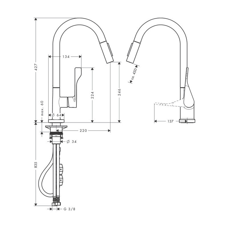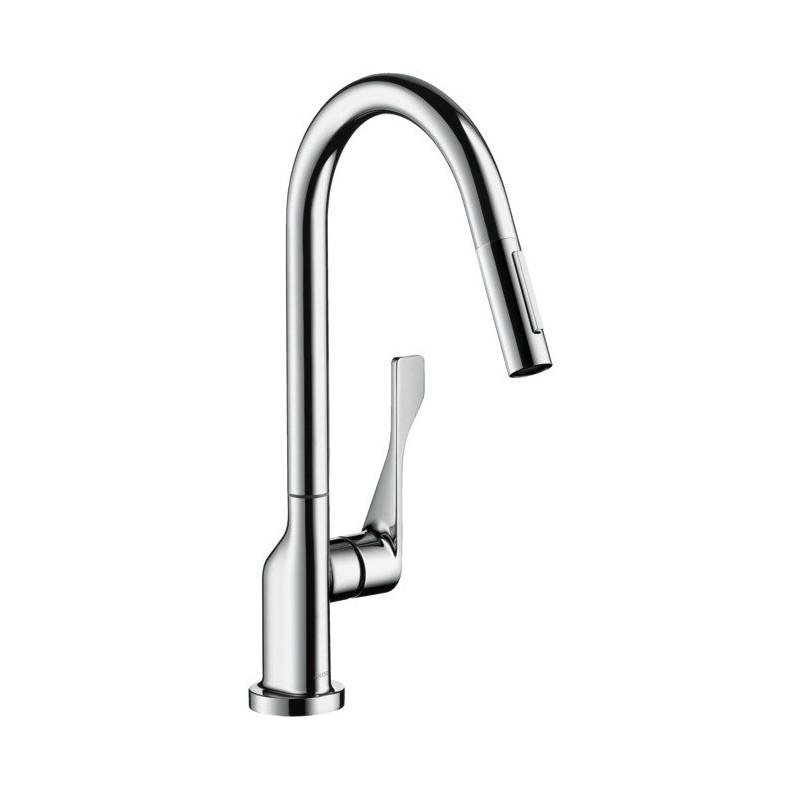 Plautuvės maišytuvas Hansgrohe Axor Citterio 250, chromo spalvos, aukštu snapu, ištraukiama žarna. Plautuvės maišytuvo apdaila padeda lengvai jį prižiūrėti, todėl nereikia didelių pastangų jį valant. Maišytuvo valymui naudojamas tik vanduo ir muilas, kad jo paviršius liktų nepažeistas. Maišytuvas sukasi 110°/150° kampu, valdomas su rankenėle šone, su ištraukiama žarna lengvesniam indų plovimui. Hansgrohe Axor Citterio 250 maišytuvo dizainas, derinasi prie įvairaus virtuvės interjero, todėl tai puikus pasirinkimas, norintiems išskirtinio plautuvės maišytuvo. "QuickClean" technologija palengvina maišytuvo priežiūrą, nes ant jo nesikaupia kalkių nuosėdos. Integruotas maksimalios temperatūros ribotuvas. Vandens pajungimas - G 3/8". Maišytuve naudojama keraminė kasetė užtikrina sklandų ir ilgaamžį maišytuvo veikimą. Suteikiama 5 metų garantija.