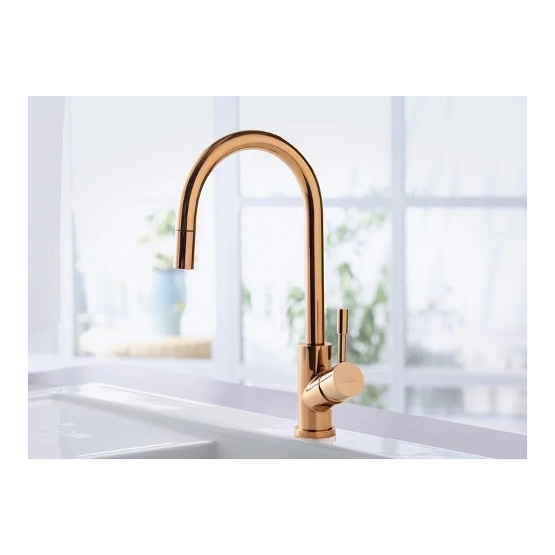Plautuvės maišytuvas Villeroy&Boch Umbrella Flex, aukso spalvos. Plautuvės maišytuvo apdaila padeda lengvai jį prižiūrėti, todėl nereikia didelių pastangų jį valant. Maišytuvo valymui naudojamas tik vanduo ir muilas, kad jo paviršius liktų nepažeistas. Maišytuvas sukasi 360° kampu, su ištraukiama žarna, valdomas su rankenėle iš šono. Elegantiškas Villeroy&Boch Umbrella Flex maišytuvo dizainas, su aukso spalva, derinasi prie įvairaus virtuvės interjero, todėl tai puikus pasirinkimas, norintiems išskirtinio plautuvės maišytuvo. Vandens pajungimas - G 3/8". Maišytuve Villeroy&Boch Umbrella Flex naudojama keraminė kasetė užtikrina sklandų ir ilgaamžį jo veikimą. Suteikiama 2 metų garantija.