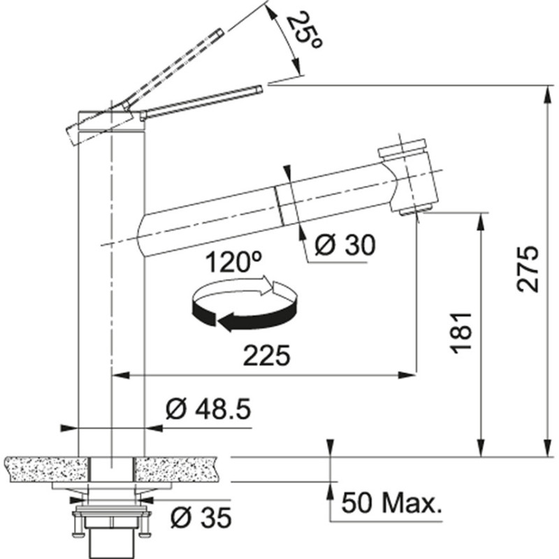 | Maišytuvo valdymo tipas | Per vidurį |