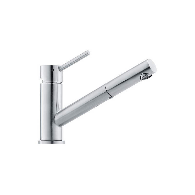 Plautuvės maišytuvas Franke Taros, nerūdijančio plieno korpusas, su ištraukiama žarna. Plautuvės maišytuvo apdaila padeda lengvai jį prižiūrėti, todėl nereikia didelių pastangų jį valant. Maišytuvo valymui naudojamas tik vanduo ir muilas, kad jo paviršius liktų nepažeistas. Maišytuvas sukasi 120° kampu, valdomas su rankenėle viduryje. Elegantiškas Franke Taros maišytuvo dizainas, derinasi prie įvairaus virtuvės interjero, todėl tai puikus pasirinkimas, norintiems išskirtinio plautuvės maišytuvo. Maišytuvo žarna, su jos gale esančia plienine galvute, išsitraukia tyliai, o maišytuvas valdomas viršuje esančia rankenėle. Skylės diametras maišytuvui - Ø35mm, vandens pajungimas - G 3/8". Visuose Franke maišytuvuose naudojamos keraminės kasetės užtikrina sklandų ir ilgaamžį maišytuvo veikimą. Suteikiama 2 metų garantija.