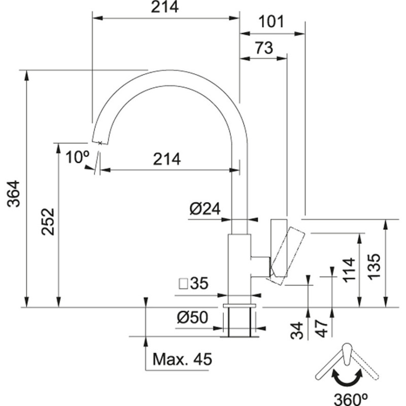 - Visas aukštis - 364mm