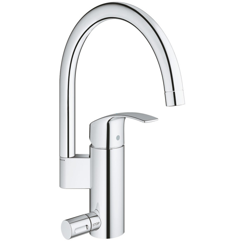 Plautuvės maišytuvas Grohe Eurosmart, chromo spalvos, su uždarymo vožtuvu. Plautuvės maišytuvo StarLight apdaila padeda lengvai jį prižiūrėti, todėl nereikia didelių pastangų jį valant. Maišytuvo valymui naudojamas tik vanduo ir muilas, kad jo paviršius liktų nepažeistas. Maišytuvas sukasi 90° kampu, valdomas su rankenėle iš šono. Elegantiškas Grohe Eurosmart maišytuvo dizainas, derinasi prie įvairaus virtuvės interjero, todėl tai puikus pasirinkimas, norintiems išskirtinio plautuvės maišytuvo. Vandens pajungimas - G 3/8". Maišytuve naudojama keraminė kasetė užtikrina sklandų ir ilgaamžį maišytuvo veikimą. Suteikiama 5 metų garantija.