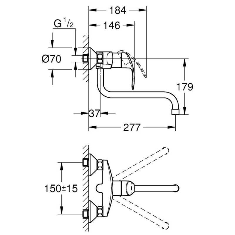 Plautuvės maišytuvas Grohe Eurosmart, iš sienos, ilgu snapu