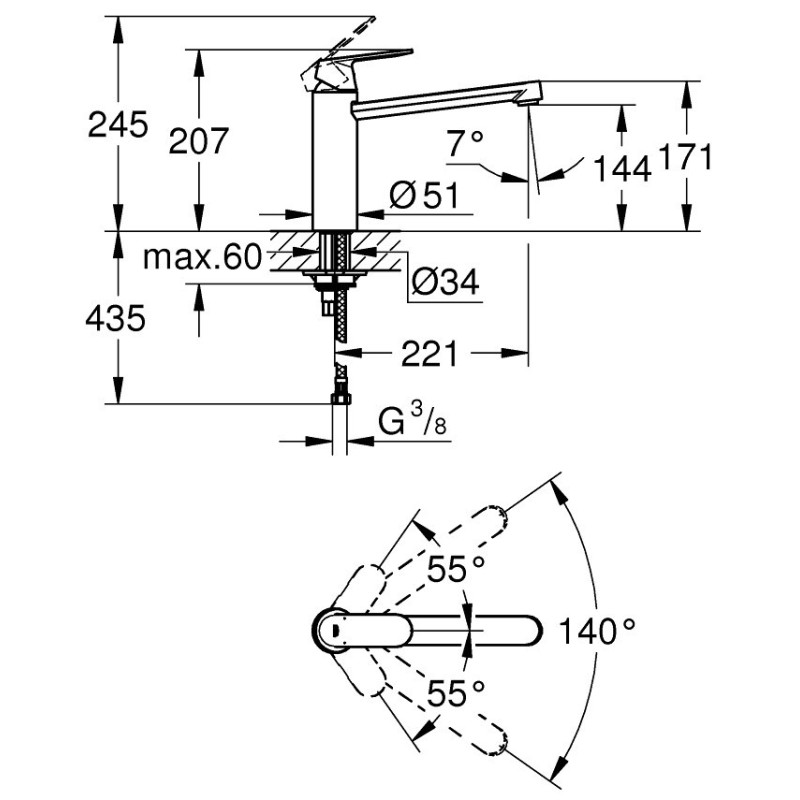Plautuvės maišytuvas Grohe Eurosmart Cosmopolitan, chromas