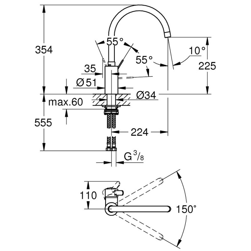 Plautuvės maišytuvas Grohe Eurosmart Cosmopolitan, chromo spalvos, aukšta svirtimi. Plautuvės maišytuvo StarLight apdaila padeda lengvai jį prižiūrėti, todėl nereikia didelių pastangų jį valant. Maišytuvo valymui naudojamas tik vanduo ir muilas, kad jo paviršius liktų nepažeistas. Maišytuvas sukasi 0°/150° kampu, valdomas su rankenėle iš šono. Elegantiškas Grohe Eurosmart Cosmopolitan maišytuvo dizainas, derinasi prie įvairaus virtuvės interjero, todėl tai puikus pasirinkimas, norintiems išskirtinio plautuvės maišytuvo. Vandens pajungimas - G 3/8". Maišytuve naudojama keraminė kasetė užtikrina sklandų ir ilgaamžį maišytuvo veikimą. Suteikiama 5 metų garantija.