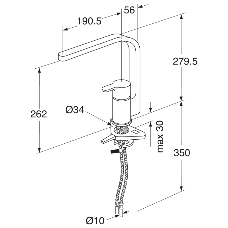 - Visas aukštis - 280mm