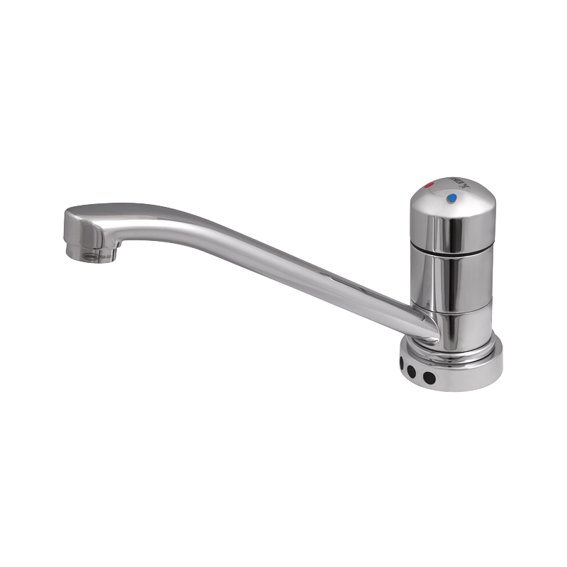 Plautuvės maišytuvas Sanela SLU03D, bekontaktis, 24V, chromuotas. Maišytuvas skirtas šaltam ir šiltam vandeniui, vandens temperatūrą reguliuoja integruotas maišytuvas. Maišytuvas reaguoja į rankos buvimą veikimo zonoje. Rankenėlė viršuje skirta vandens temperatūros reguliavimui. Vanduo išjungiamas automatiškai patraukus rankas iš veikimo zonos (po 0.25-7.75s, galima nustatyti norimą laiką). Maišytuve Sanela SLU03D integruota automatinė vandens sustojimo funkcija, po 5min. nepertraukiamo srauto. Maišytuvo parametrai reguliuojami nuotoliniu pultu Sanela SLD03.