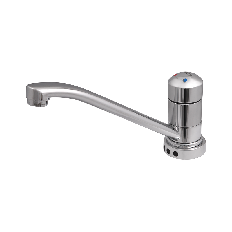 Plautuvės maišytuvas Sanela SLU03DB, bekontaktis, 9V maitinimas nuo baterijos, chromuotas. Maišytuvas skirtas šaltam ir šiltam vandeniui, vandens temperatūrą reguliuoja integruotas maišytuvas. Maišytuvas reaguoja į rankos buvimą veikimo zonoje. Rankenėlė viršuje skirta vandens temperatūros reguliavimui. Vanduo išjungiamas automatiškai patraukus rankas iš veikimo zonos (po 0.25-7.75s, galima nustatyti norimą laiką). Maišytuve Sanela SLU03DB integruota automatinė vandens sustojimo funkcija, po 5min. nepertraukiamo srauto. Maišytuvo parametrai reguliuojami nuotoliniu pultu Sanela SLD03.