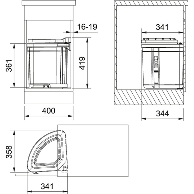 Šiukšliadėžė, Matmenys(PxGxA) - 358x344x419mm, Talpa - 27l, Montuojama spintelės durelių, Lengvas valymas, 2 metų garantija