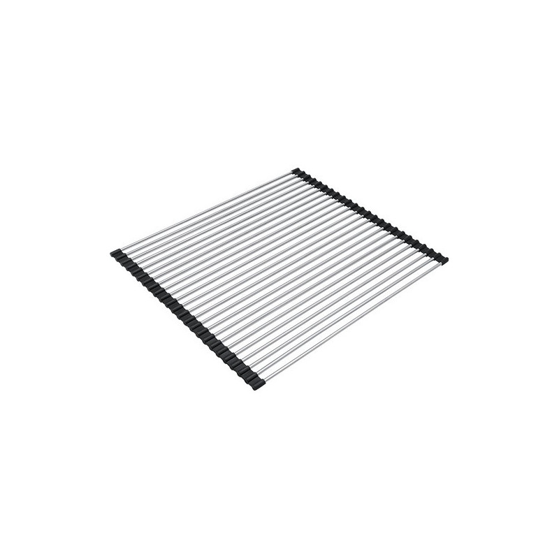 Vyniojamas padėkliukas Franke Rollamat, universalus. Padėkliukas iš nerūdijančio plieno su silikoniniais sujungimais. Puikiai pasitarnauja kaip nuvarvėjimo padėkliukas, o jo nenaudojant galima kompaktiškai suvynioti. Tinka su Franke Maris serijos keraminėmis plautuvėmis. Suteikiama 2 metų garantija.