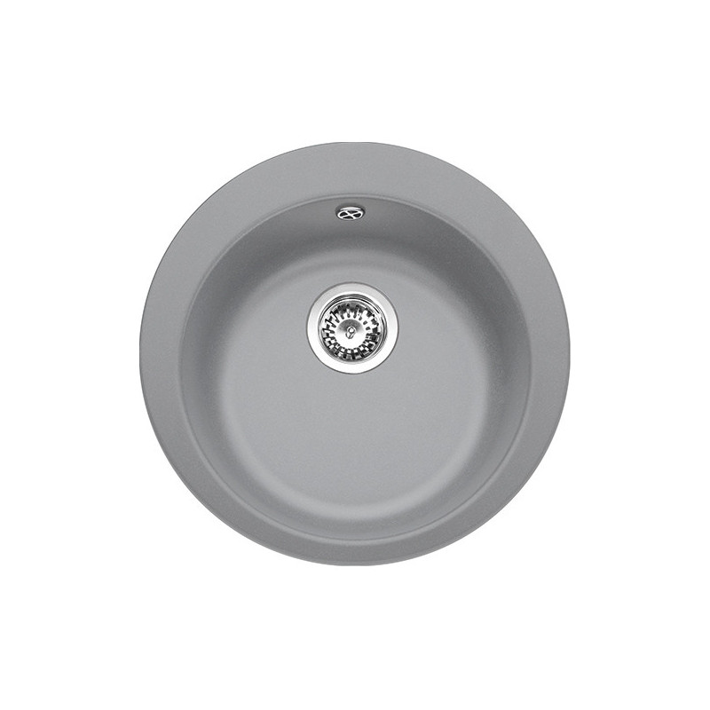 Tectonite plautuvė Franke Single 1, pilkos spalvos. Dubens matmenys - ø400mm. Plautuvė apvalios formos, pilkos spalvos, modernaus dizaino, todėl tiks prie įvairaus virtuvės interjero. Plautuvė Franke Single 1, be nusausinimo plokštumos, montuojama iš viršaus, taip pat integruotas platus 3.1/2" užkemšamas ventilis. Suteikiama 2 metų garantija.