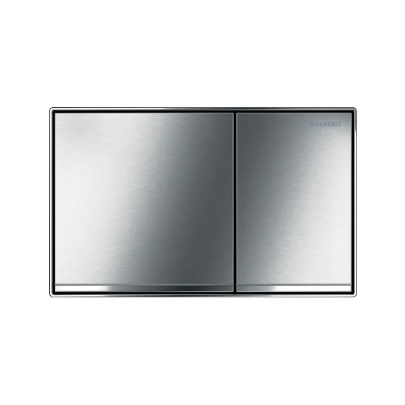 Vandens nuleidimo mygtukas Geberit Sigma60, šveisto chromo spalvos. Du mygtukai pasirinktam iš dviejų tipų vandens nuleidimui. Tinka 12 cm bakeliui, papildomai reikia įsigyti montavimo rinkinį Geberit 243.168.00.1.