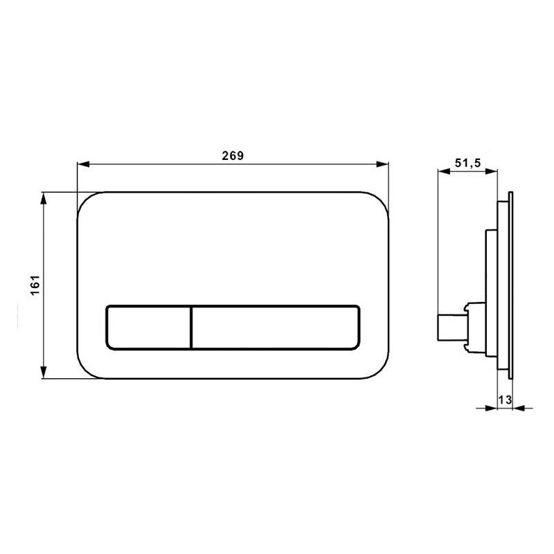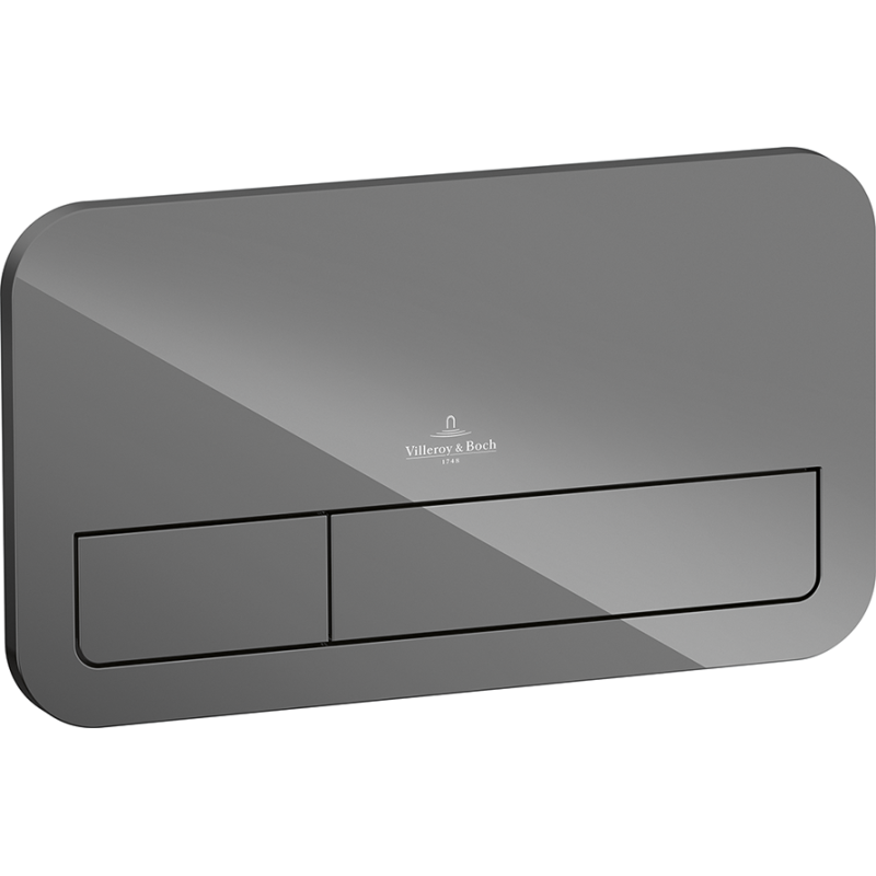 WC vandens nuleidimo mygtukas, Pilkos spalvos, 2 vandens nuleidimo tipai, Lengvas montavimas, Matmenys (PxAxG) - 269x130x13 mm, Iš stiklo, Tinka su Villeroy & Boch ViConnect potinkinėmis sistemomis, 2 metų garantija