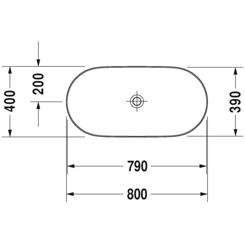 Praustuvas, Dubens formos, Matmenys 800x400 mm, Baltos spalvos, Iš keramikos, Pastatomas, Be persipylimo, Be skylės maišytuvui, Su keramikiniu dugno vožtuvu, Tvirtinimai komplekte, 5 metų garantija