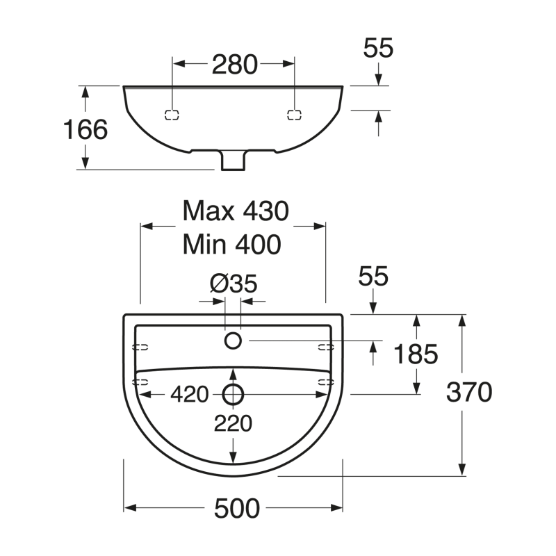 Praustuvas, Matmenys(PxAxG) - 500x166x370 mm, Baltos spalvos, Iš higieniško ir patvaraus sanitarinio porceliano, Tvirtinamas varžtais arba laikikliais, 2 metų garantija