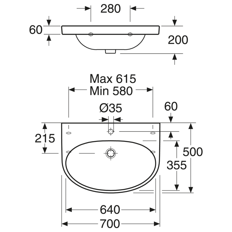 Praustuvas, Matmenys(PxAxG) - 700x200x500 mm, Baltos spalvos, Lengva priežiūra, Iš higieniško ir patvaraus sanitarinio porceliano, Tvirtinamas laikikliais arba varžtais, Elipsės formos, 2 metų garantija