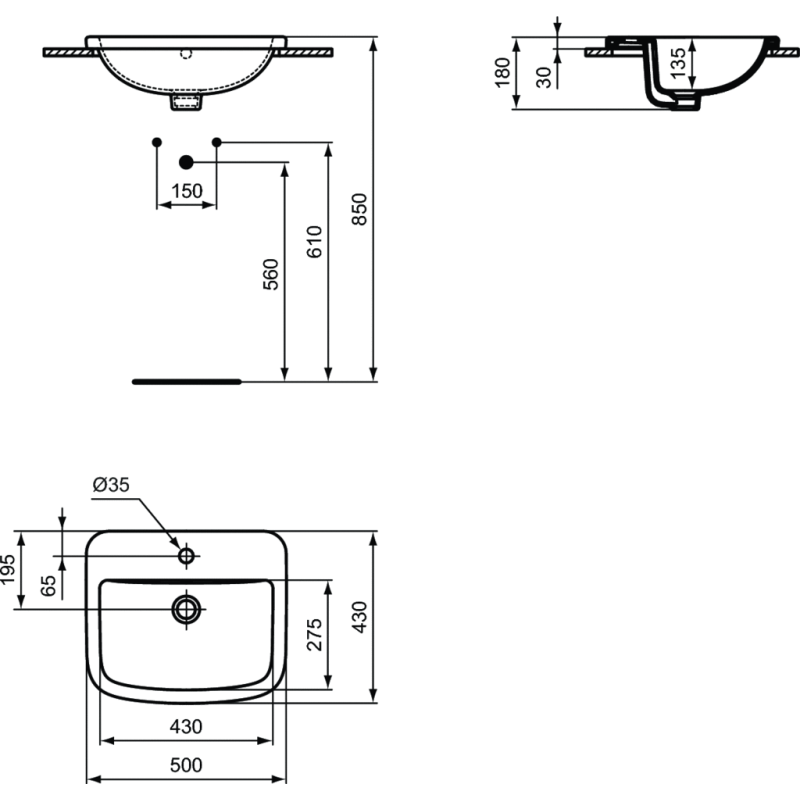 Praustuvas Ideal Standard Tempo, 50 cm, įleidžiamas