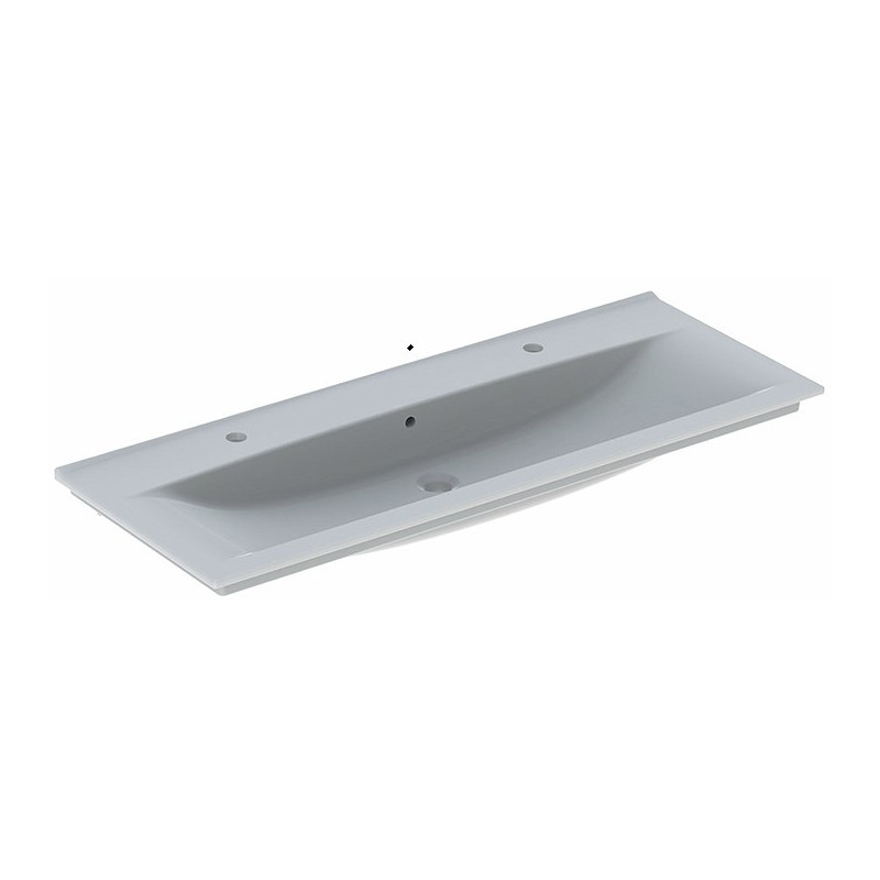 Praustuvas, Matmenys - 1210x470x165 mm, Baltos spalvos, Keramikinis, Baldinis, Dvigubas, Su persipylimu, Su 2 skylėmis maišytuvams, 5 metų garantija