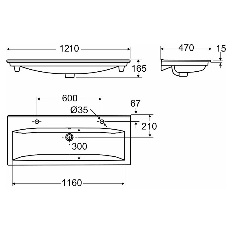 - Matmenys - 1210x470x165 mm