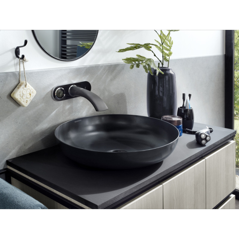 Praustuvas, Apvalus, Matmenys - Ø380 mm, Juodos spalvos, Iš emaliuoto plieno, Pastatomas, Be persipylimo, Be skylės maišytuvui, 30 metų garantija