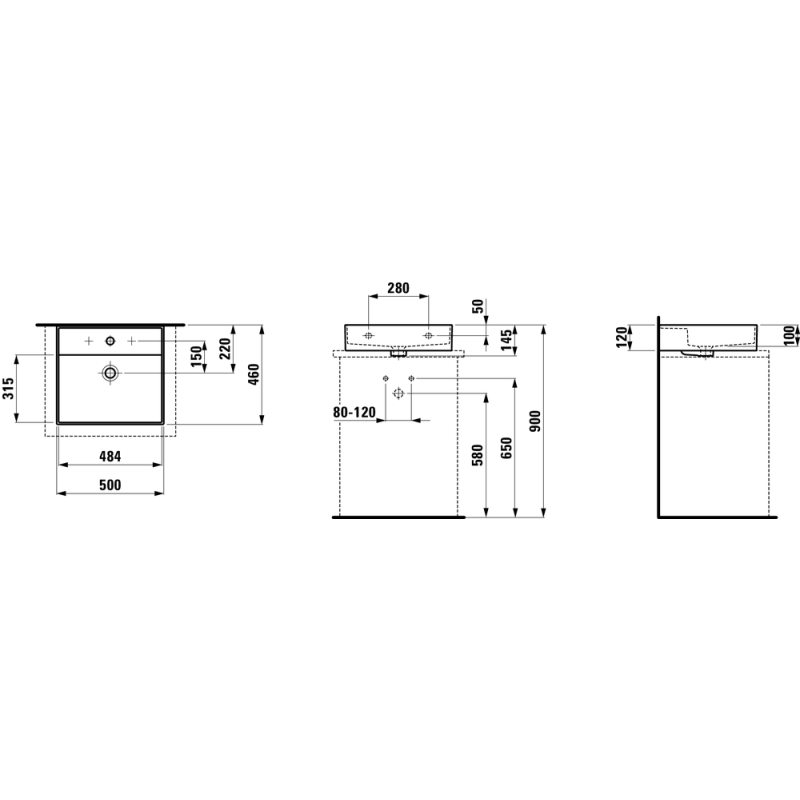 Praustuvas, Pastatomas arba pakabinamas, Matmenys(PxAxG) - 500x145x460 mm, Juodos spalvos, Iš keramikos, Stačiakampis, Lengvai valomas ir montuojamas, Su skyle maišytuvui, Su persipylimu, 5 metų garantija