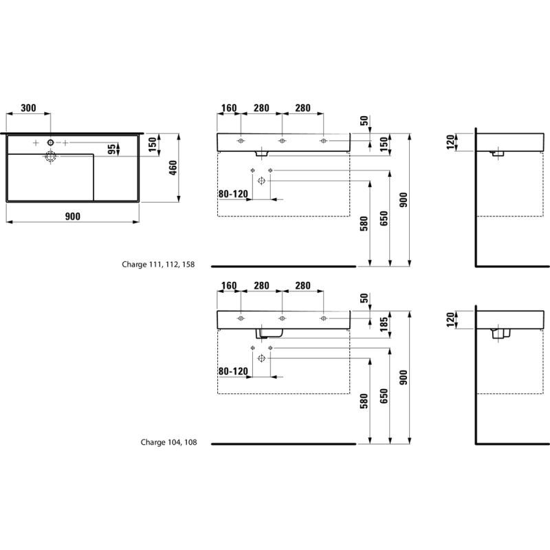 Praustuvas, Pakabinamas, Matmenys(PxAxG) - 900x185x460 mm, Baltos spalvos, Su plačiu dešiniu kraštu, Iš keramikos, Stačiakampis, Lengvai valomas ir montuojamas, Be skylės maišytuvui, Su persipylimu, 5 metų garantija