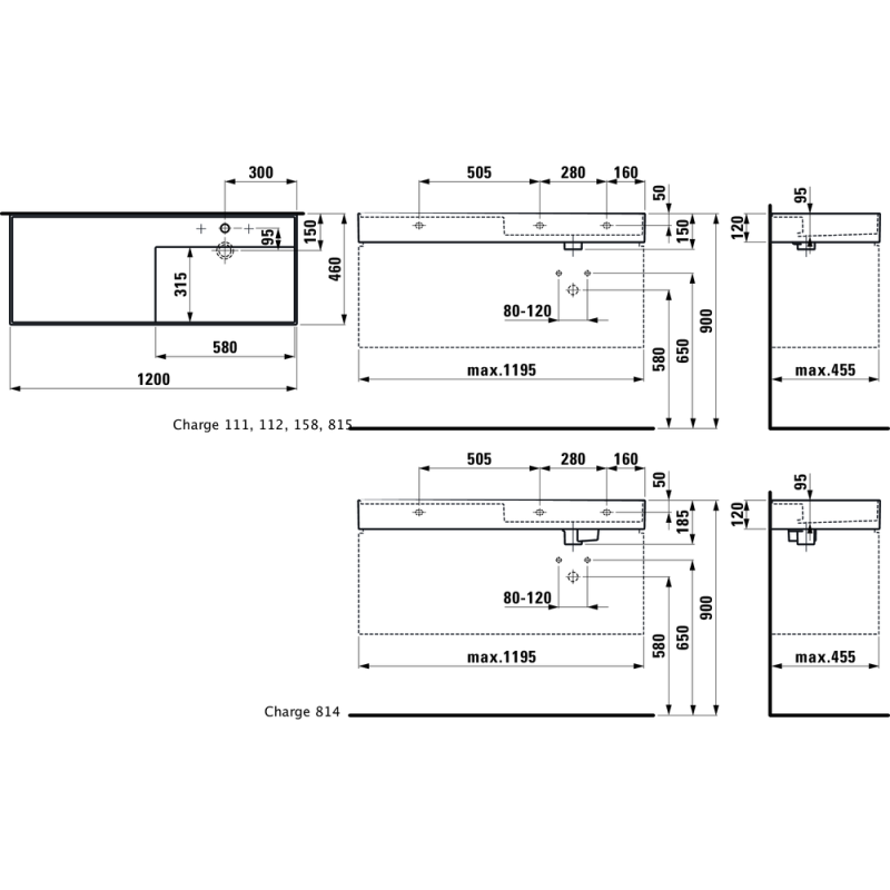 Praustuvas, Įleidžiamas, Matmenys(PxAxG) - 1200x185x460 mm, Baltos spalvos, Su plačiu kairiuoju kraštu, Iš keramikos, Stačiakampis, Lengvai valomas ir montuojamas, Su skyle maišytuvui, Be persipylimo, 1 skylė elektroniniam valdymo vožtuvui