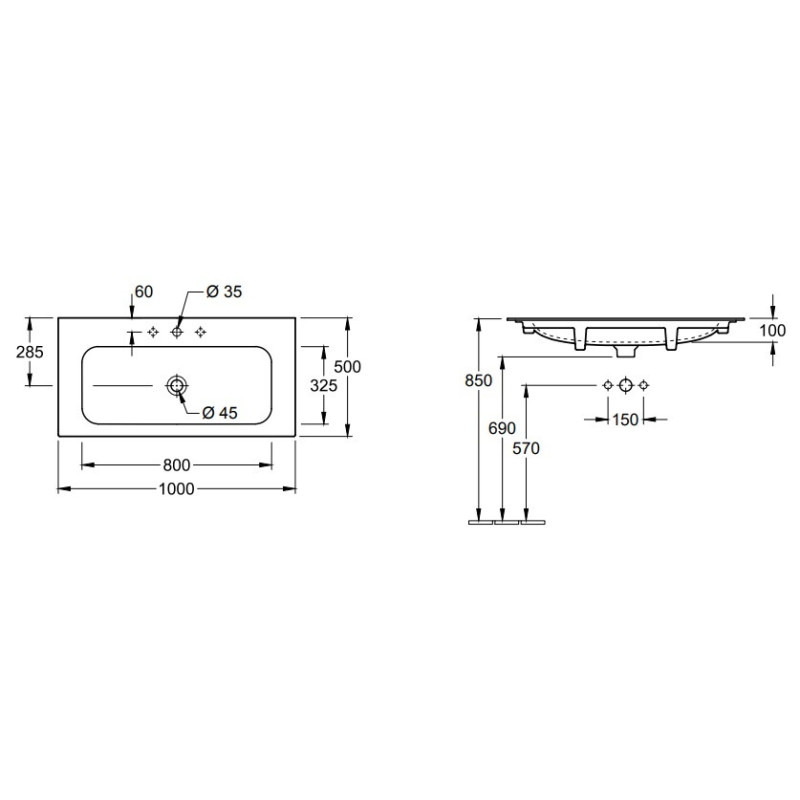 Praustuvas Villeroy&Boch Finion, 1000x500 mm, pakabinamas