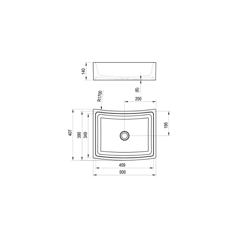 Praustuvas, Matmenys - 500x410x140 mm, Pastatomas ant plokštės, Baltos spalvos, Iš kompozitinės medžiagos, Be persipylimo, Montuojamas kartu su fiksuota sifono galvute, Tinka šiuolaikiniams vonios kambariams, 5 metų garantija