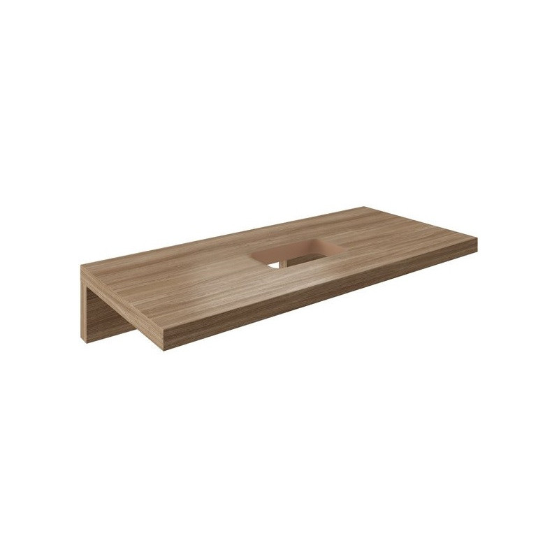 Plokštė po praustuvu, Tamsaus riešuto spalvos, Pasirenkamo ilgio, Iš impregnuotos MDF plokštės, Su anga praustuvo montavimui, Laikiklis komplekte, 5 metų garantija