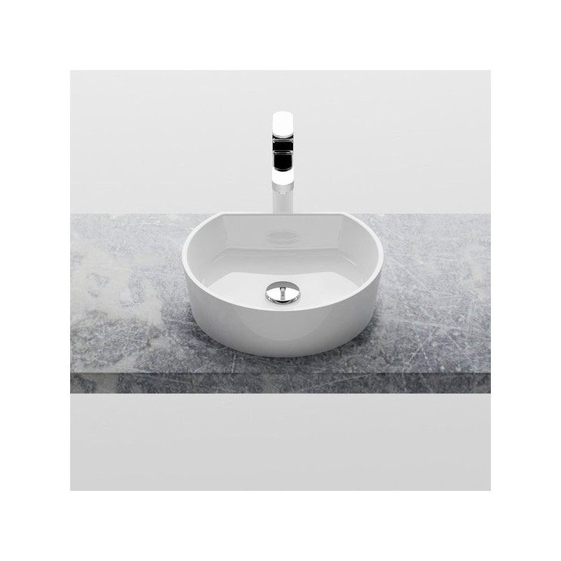 Praustuvas, Pastatomas, Montuojamas prie plokštės, Baltos spalvos, Iš kompozitinės medžiagos, Su paslėptu persipylimu, Montuojamas kartu su fiksuota sifono galvute, Be skylės maišytuvui, Matmenys(PxAxG) - 400x120x355 mm, 5 metų garantija