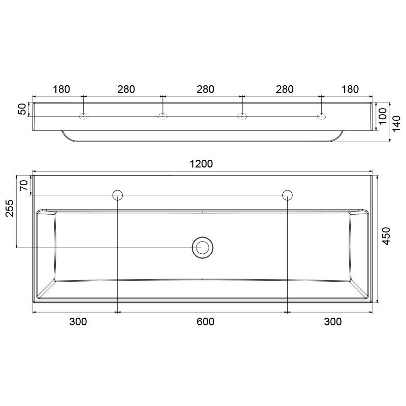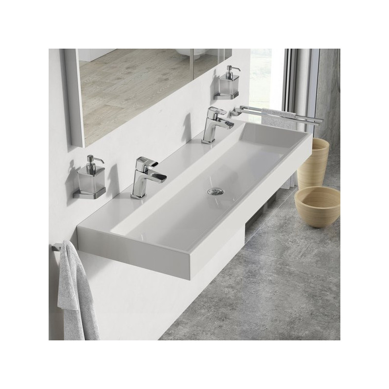 Praustuvas, Montuojamas prie sienos, Baltos spalvos, Iš kompozitinės medžiagos, Su paslėptu persipylimu, Montuojamas kartu su fiksuota sifono galvute, Tinka šiuolaikiniams vonios kambariams, Matmenys(PxAxG) - 1200x140x450 mm, 5 metų garantija