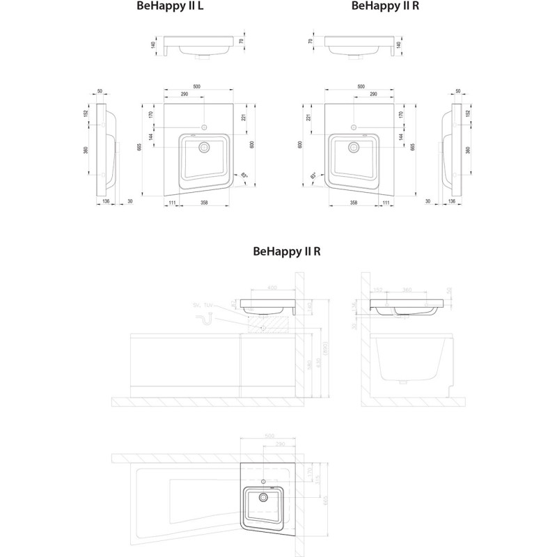 Praustuvas Ravak BeHappy II, baltas, pakabinamas/pastatomas. Matmenys - 500x140x665 mm. Praustuvas pagamintas iš lieto dolomito ir dervos mišinio, idealiai tinka mažame vonios kambaryje dėl savo matmenų. Praustuvas Ravak BeHappy II montuojamas virš vonios arba vonios kambario kampe. Kampinis praustuvas Ravak BeHappy II, pakabinamas/pastatomas, su persipylimu ir skyle maišytuvui. Komplektuojamas kartu su montavimo rinkiniu (jungiamosios mūrvinės, sraigtai ir t.t.) bei perpylimo dangčiu. Suteikiama 5 metų garantija.