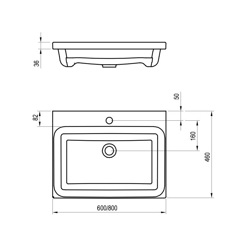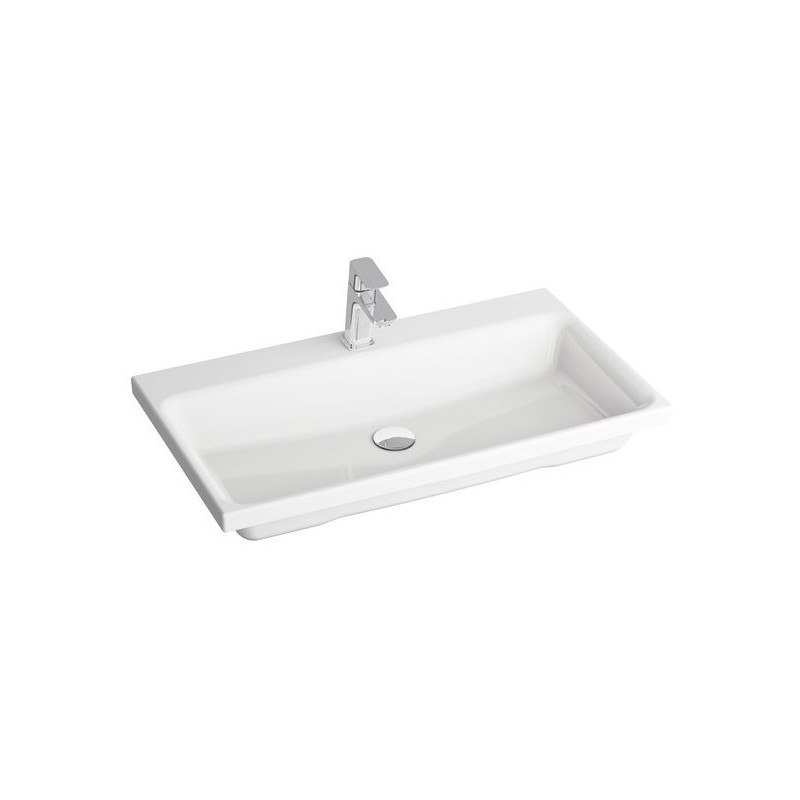 Praustuvas, Matmenys - 800x460x30 mm, Įleidžiamas į spintelę, Baltos spalvos, Iš keramikos, Be persipylimo, Su skyle maišytuvui, Tinka šiuolaikiniams vonios kambariams, 5 metų garantija