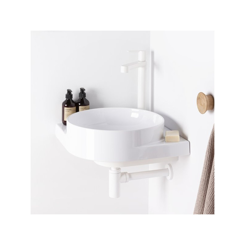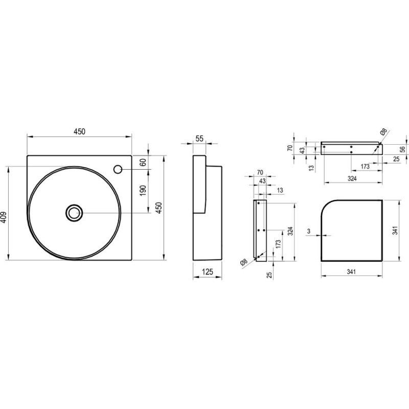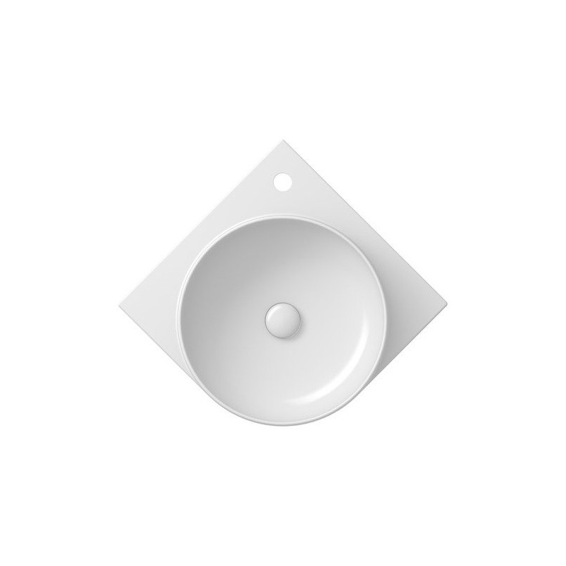 Mažas praustuvas, Kampinis, Matmenys(PxAxG) - 450x125x450 mm, Baltos spalvos, Iš aukštos kokybės keramikos, Be persipylimo, Su skyle maišytuvui, Montavimui ant Ravak Yard 280 C laikiklio, 5 metų garantija