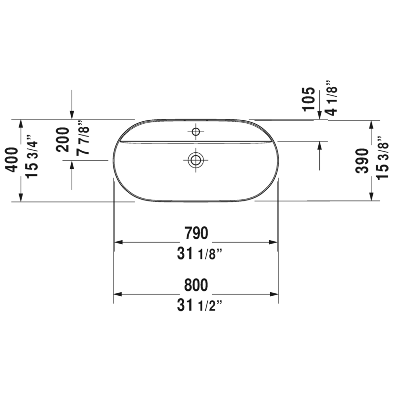Praustuvas, Dubens formos, Matmenys 800x400mm, Baltos spalvos, Iš keramikos, "WonderGliss" paviršiaus danga, Su šlifuota apačia, Pastatomas, Be persipylimo, Su skyle maišytuvui, 5 metų garantija