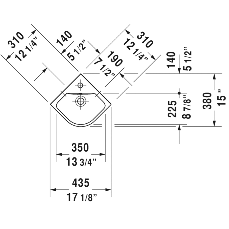 Praustuvas Duravit Me By Starck, 430x380mm, kampinis