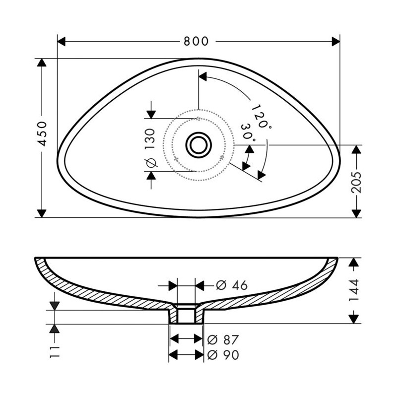 Praustuvas-dubuo Hansgrohe Axor Massaud, 800x450mm