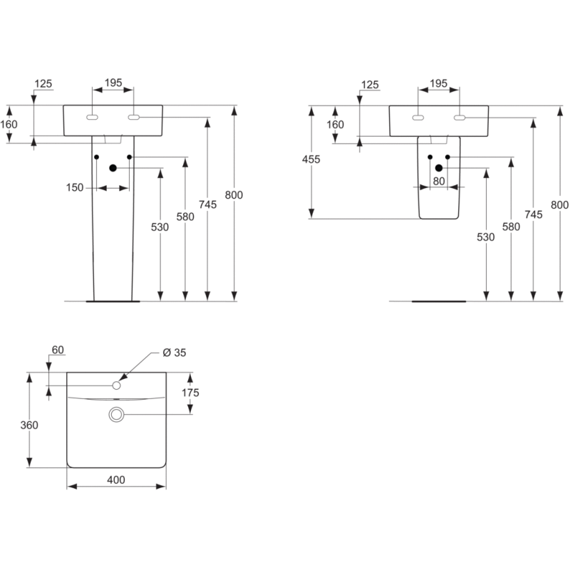 Praustuvas, Įvairių matmenų, Baltos spalvos, Iš keramikos, Su persipylimu, Su skyle maišytuvui, IdealPlus paviršiaus danga, Montuojamas ant pagrindo