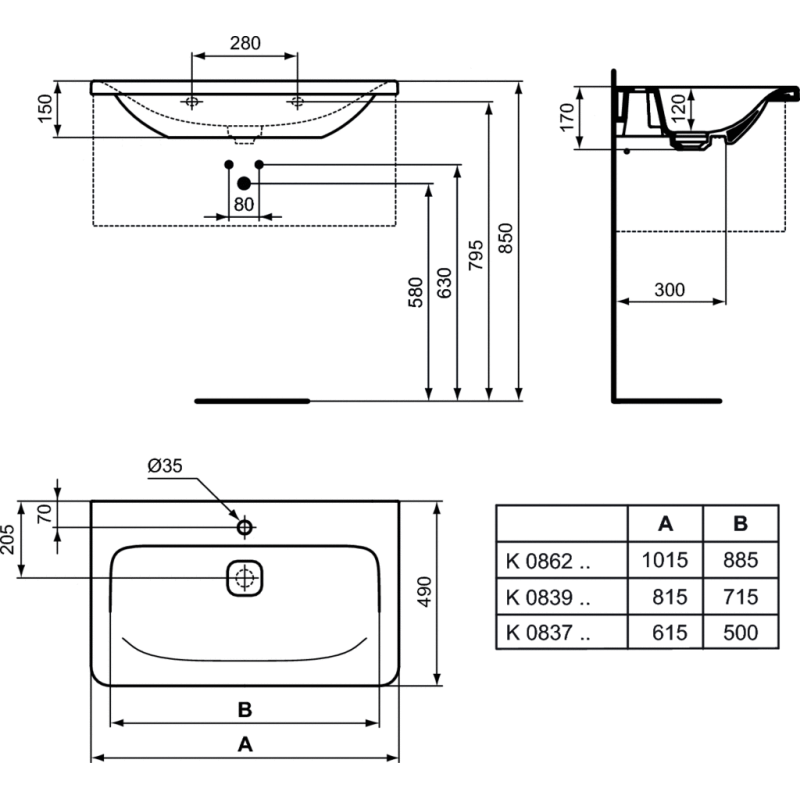 Praustuvas, Matmenys 815x490x170mm, Baltos spalvos, Iš keramikos, Baldinis, Su skyle maišytuvui