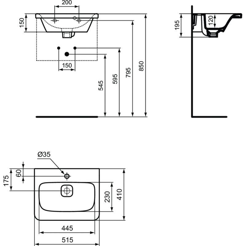 Praustuvas, Matmenys 515x410x195mm, Baltos spalvos, Iš keramikos, Baldinis, Su persipylimu, Su skyle maišytuvui