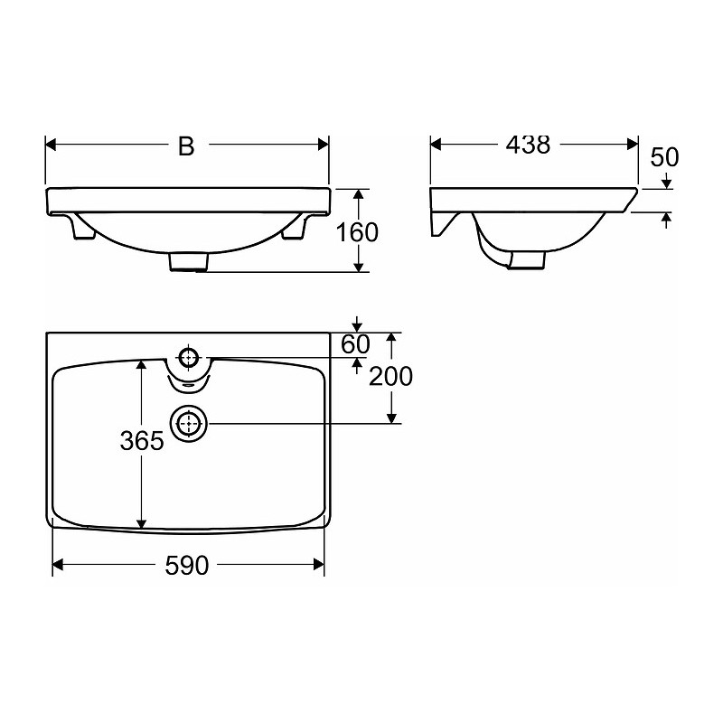 Praustuvas, Matmenys 600x438x160mm, Baltos spalvos, Keramikinis, Baldinis, Su persipylimu, Su skyle maišytuvui, 5 metų garantija