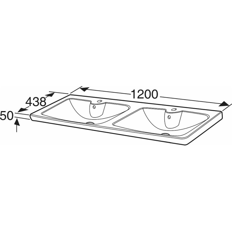Praustuvas Ido Glow, 1200x438mm, baldinis, dvigubas