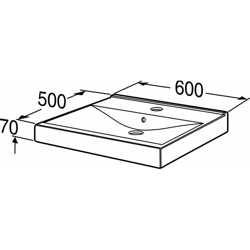 Praustuvas/stalviršis, Matmenys 600x500x150mm, Baltos spalvos, Keramikinis, Su persipylimu, Su skyle maišytuvui, 5 metų garantija