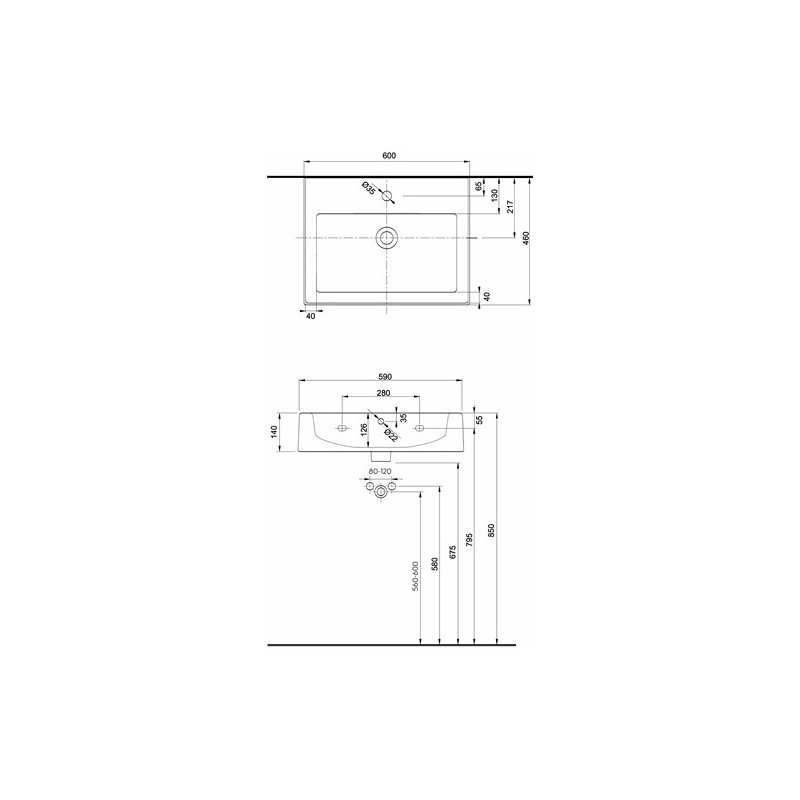 Praustuvas, Matmenys 600x460x175mm, Baltos spalvos, Keramikinis, Pakabinamas, Su persipylimu, Su 1 skyle maišytuvui, 2 metų garantija