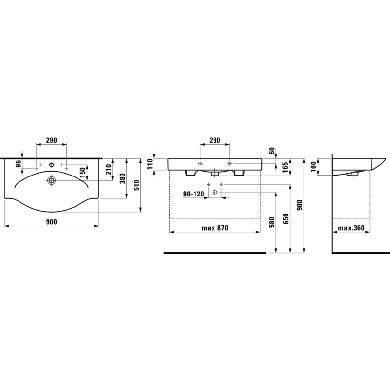 Praustuvas Laufen Palace New 90, 900x510mm, baldinis